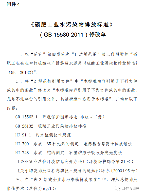 4.《磷肥工業(yè)水污染物排放標(biāo)準(zhǔn)》(GB 15580-2011)修改單