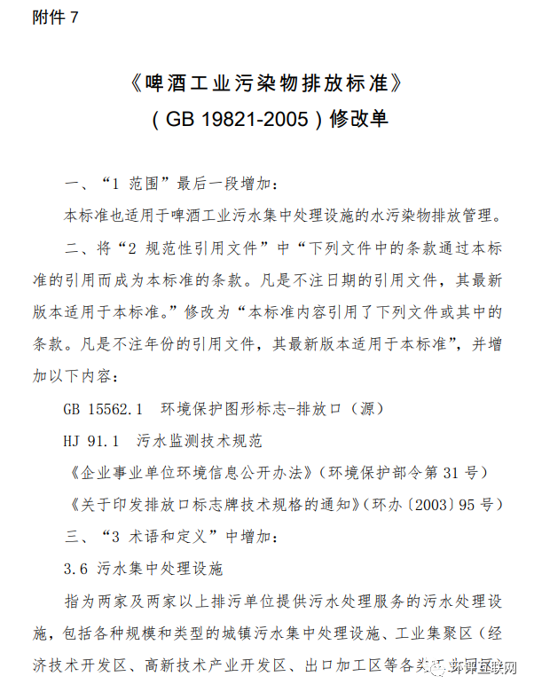 7.《啤酒工業(yè)污染物排放標(biāo)準(zhǔn)》(GB 19821-2005)修改
