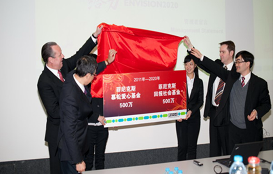 力所能及回報社會,做優(yōu)秀企業(yè)公民。秉承“雪中送炭,做優(yōu)秀企業(yè)公民”的理念,菲尼克斯電氣成立回報社會基金和慕松愛心基金,勇于肩負(fù)社會責(zé)任。于內(nèi),關(guān)注員工工作和生活,對于因重大變故導(dǎo)致困難的員工家庭,開展應(yīng)急救助;于外,從1994年開始關(guān)注希望工程,隨后陸續(xù)在全國援建8所菲尼克斯希望小學(xué),支持2所西藏那曲地區(qū)貧困小學(xué);從1995年開始關(guān)注南京兒童福利院,2009年開始關(guān)注高淳社會福利院;2001年開始陸續(xù)在10余所大學(xué)設(shè)立獎學(xué)金以及建立實驗室;傾力支持抗震救災(zāi)(2008年汶川地震、2009年玉樹地震、2013年雅安地震);2009年開始支持大學(xué)生圓夢行動,累計支持超過400名大學(xué)生入學(xué);2014年開始支持普方協(xié)會孩子完成學(xué)業(yè);2020年為湖北和南京的醫(yī)院捐贈款項和醫(yī)用物資,為武漢雷神山醫(yī)院捐贈急需的電氣產(chǎn)品,為德國華僑贈送防護(hù)物品,全力抗擊新冠疫情;2021年為支持河南抗洪救災(zāi)……菲尼克斯電氣勇?lián)鐣?zé)任從未止步!