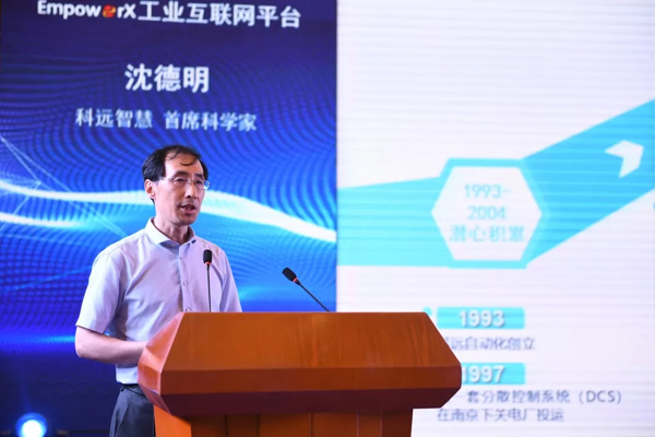 在正式發(fā)布之前,科遠(yuǎn)智慧首席科學(xué)家沈德明教授發(fā)表《面向工業(yè)的賦能平臺(tái)——EmpoworX工業(yè)互聯(lián)網(wǎng)平臺(tái)》報(bào)告,詳細(xì)介紹了EmpoworX工業(yè)互聯(lián)網(wǎng)平臺(tái)架構(gòu)及相關(guān)功能。