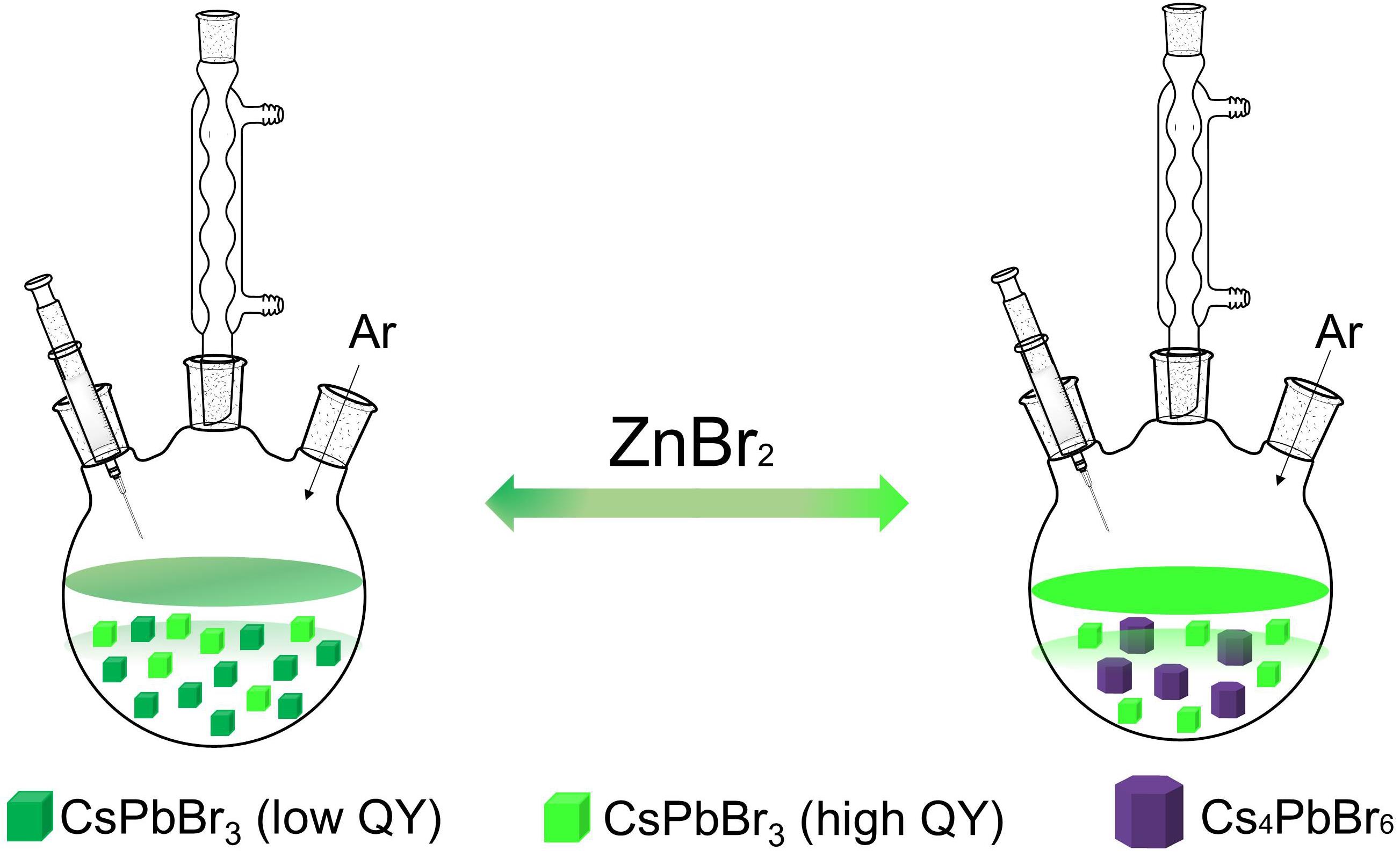 在ZnBr2誘導(dǎo)劑作用下CsPbBr3和Cs4PbBr6鈣鈦礦納米晶結(jié)構(gòu)轉(zhuǎn)換的示意圖