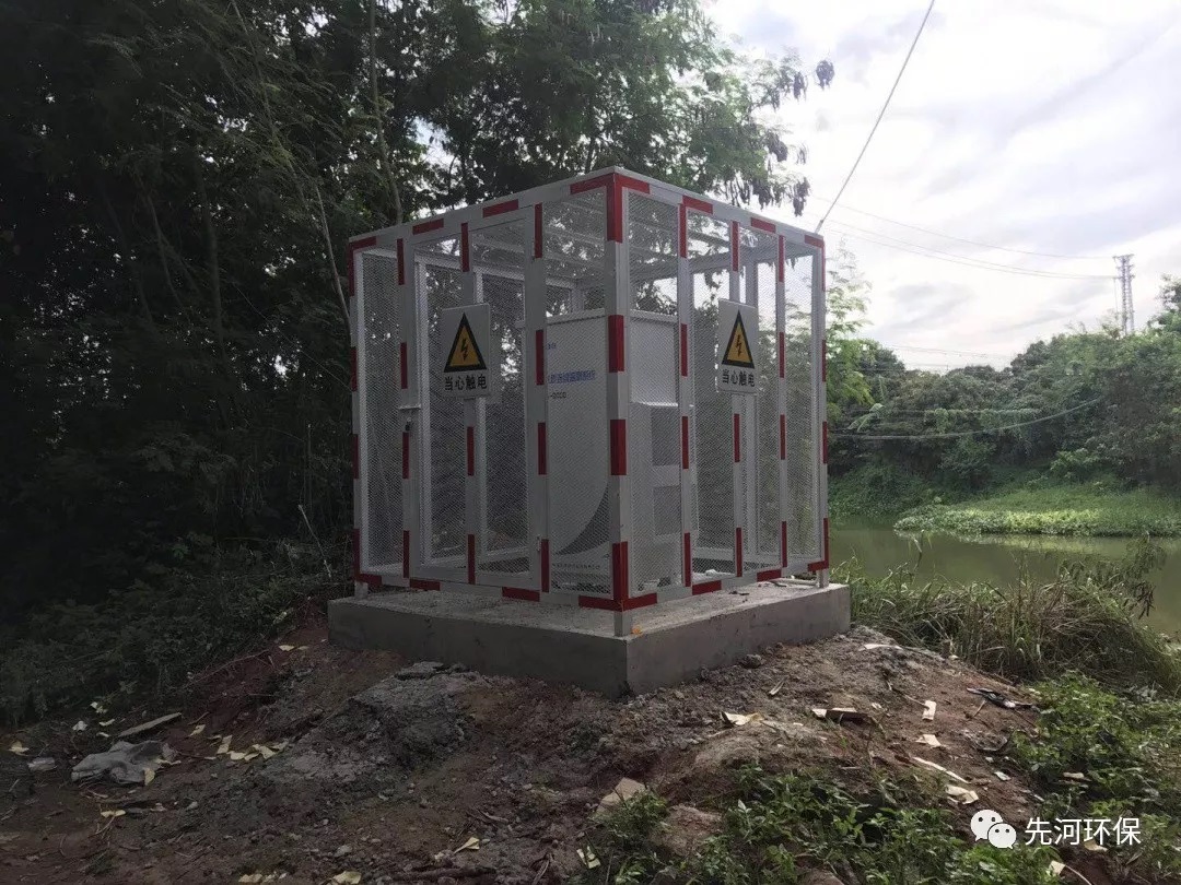 圖為先河環(huán)保水環(huán)境實驗基地黑臭水體水質(zhì)自動監(jiān)測系統(tǒng)現(xiàn)場照片