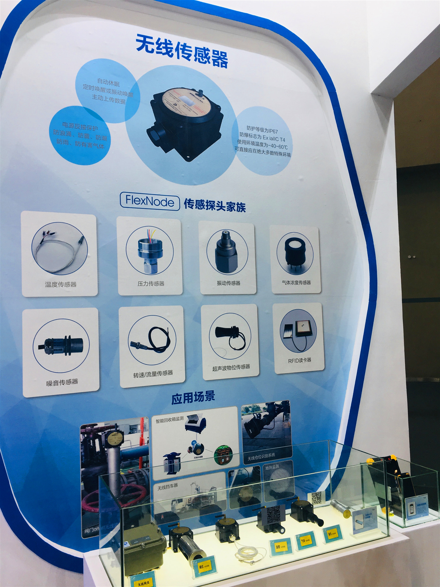 據公司負責人介紹:FlexNode是一套靈活可配置的多參數無線傳感器套件,一個FlexNode節點可同時接入多個不同種類傳感探頭,支持NB-IoT、LoRa等多種無線物聯網傳輸網絡,適用于設備運行(電機)監控系統、管網地井監控系統、工廠用電監控系統、能源數據采集及監控系統、智能樓宇監控系統、環境監測系統等,并已取得防爆認證, FlexNode防護等級為IP67,防爆標志為 Ex iaIIC T4,使用環境溫度為-40~60℃,特別適用于危險、特種行業、超低功耗等可直接應在絕大多數特殊環境領域。