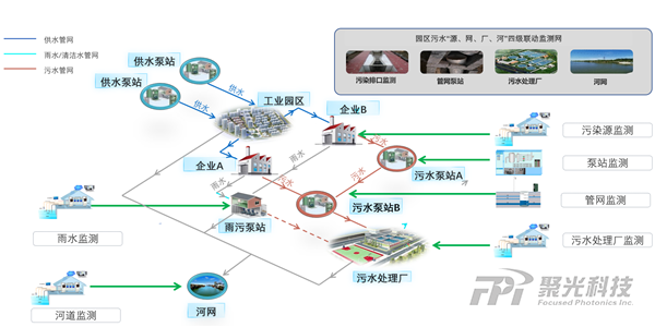 針對園區(qū)水污染防治工作中遇到的難題,聚光科技提出“源、網(wǎng)、廠、河”四級聯(lián)動監(jiān)管體系,運用監(jiān)測、監(jiān)管、大數(shù)據(jù)算法等手段對水污染源從產(chǎn)生到流入自然水體的每個環(huán)節(jié)進行監(jiān)測、監(jiān)管、調(diào)度及調(diào)節(jié),以實現(xiàn)水環(huán)境的閉環(huán)管理。