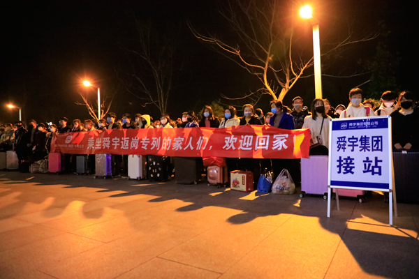 “乘坐舜宇返崗專列的家人們,歡迎回家。”2020年2月18日晚,高鐵余姚北站和寧波站接站口,迎接舜宇員工的橫幅格外鮮亮。三輛搭載著舜宇職工的“員工專列”先后抵達(dá),近300名來自周口、阜陽、成都、貴州、南昌、上饒等地區(qū)的舜宇員工及其親屬友人在政府及公司工作人員的引導(dǎo)下,井然有序地出站。