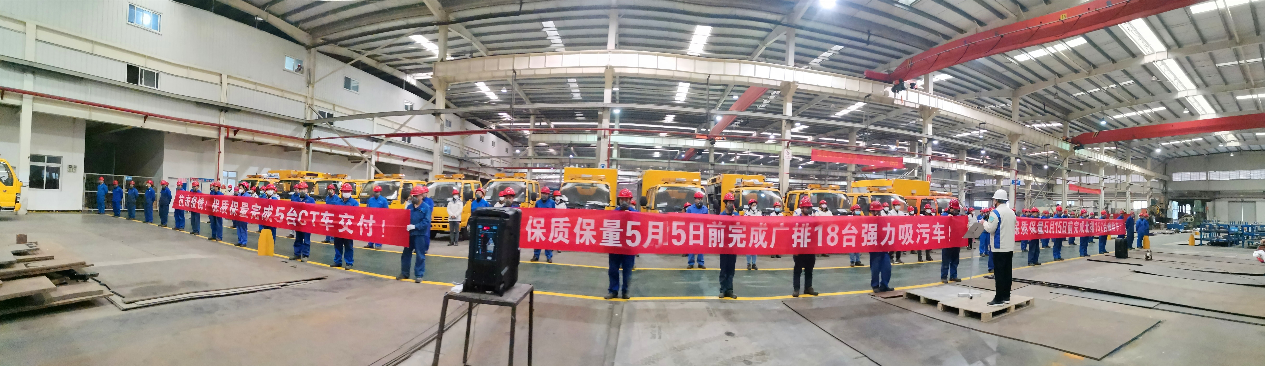 長風(fēng)破浪會有時,直掛云帆濟滄海。歷經(jīng)十年磨礪,終于在2020年初迎來歷史性的時刻,18臺強力吸污車、152臺救險車、5臺CT車同期批量排產(chǎn)。為保質(zhì)、保量順利完成交付,在這個特殊的時期對全體家人進行動員。
