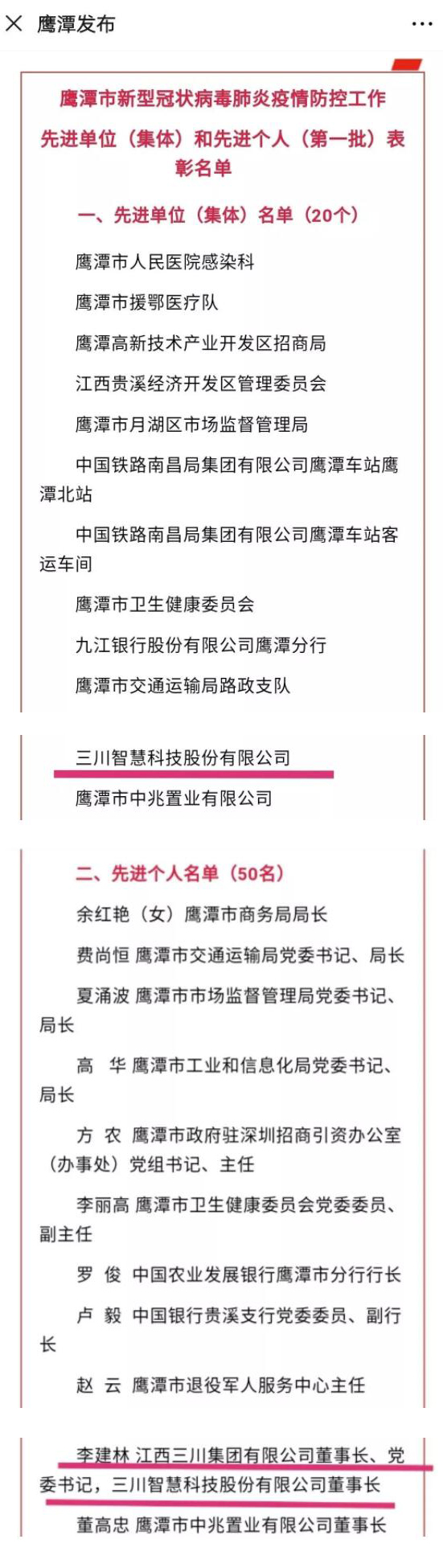 三川智慧榮獲疫情防控工作先進(jìn)單位 三川智慧董事長榮