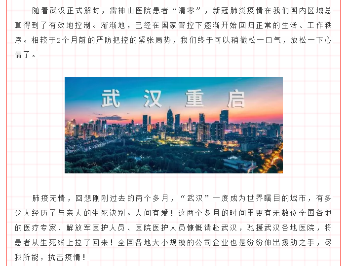 2月9日,第一時間與園區(qū)領導申請復工復產(chǎn)。加班加點,生產(chǎn)余氯在線分析儀,2月12日派物資專車馳援武漢,2月13日到達龔家?guī)X收費站,完成無接觸交貨;