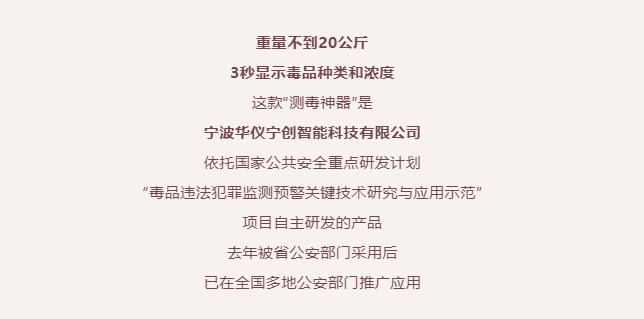 近日,全國禁毒工作電視電話會議提出“強化禁毒科技攻關(guān),有效提升毒品檢驗鑒定能力”,這個“利好”意味著該產(chǎn)品市場前景廣闊,這讓華儀寧創(chuàng)總經(jīng)理兼總工程師聞路紅很興奮。