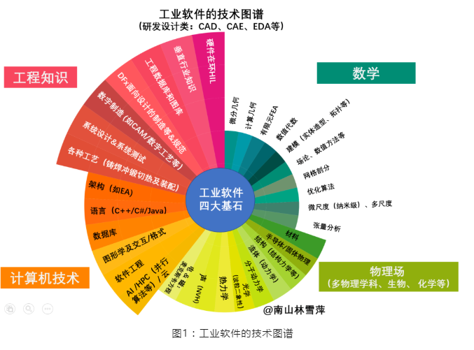 盡管它支撐了整個工業的體系,但它的市場份額卻小的可憐,不拿顯微鏡,是找不到它的存在。然而它自身的構成,分別是令人望而生畏的數學、物理、計算機和工程經驗。沒有一種產值如此微不足道的工業產品,卻需要有如此漫長的生命軌跡。從大學的數學方程式開始出發,經過漫長的物理機理的冶煉、計算機科學與技術的萃取,最后還必須經過工程知識的淬火,才能成為一個成熟可用的工業軟件產品。