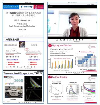 5月19日迎來了第一場以顯示與成像材料為主題的專題講座,榮幸地邀請到來自華南理工大學(xué)材料學(xué)院的副研究員喬現(xiàn)鋒老師,進(jìn)行了題為“基于FLS980實(shí)現(xiàn)時間分辨電致發(fā)光光譜和上轉(zhuǎn)換發(fā)光動力學(xué)測試”的報告。深入淺出地介紹了TCSPC原理,時間分辨電致發(fā)光的解決方案及上轉(zhuǎn)換發(fā)光動力學(xué)的測試實(shí)例。來自愛丁堡的應(yīng)用產(chǎn)品專家Maria博士再次與直播網(wǎng)絡(luò)的形式與國內(nèi)用戶見面,介紹了包含了使用穩(wěn)態(tài)/瞬態(tài)熒光,瞬態(tài)吸收,拉曼光譜技術(shù)在熒光探針、LED與OLED材料、上轉(zhuǎn)換等發(fā)光材料的應(yīng)用。