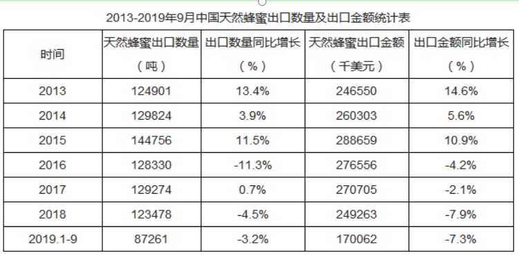 圖3:蜂蜜出口數(shù)量、金額統(tǒng)計(jì)表