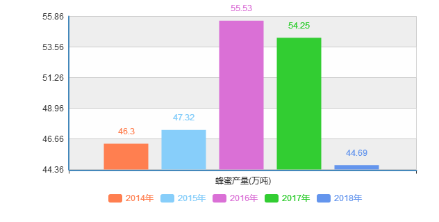 圖1:近五年中國蜂蜜產(chǎn)量統(tǒng)計(jì) 來源:國家統(tǒng)計(jì)局
