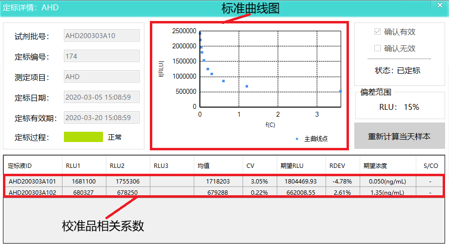 通過呋喃四項(xiàng)校準(zhǔn)品發(fā)光值進(jìn)行算法擬合出當(dāng)天標(biāo)準(zhǔn)曲線, 校準(zhǔn)品各詳細(xì)參數(shù)均在下圖中,校準(zhǔn)品變異系數(shù)均小于5%。