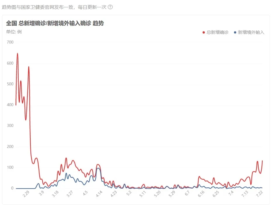 2月21日~7月22日全國(guó)疫情新增趨勢(shì)(數(shù)據(jù)源自百度疫情實(shí)時(shí)大數(shù)據(jù)報(bào)告)