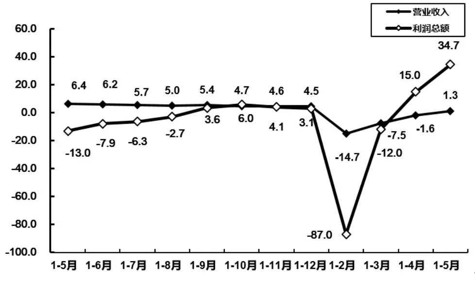 2020年1-5月電子信息制造業(yè)營(yíng)業(yè)收入、利潤(rùn)增速變動(dòng)情況(%)-數(shù)據(jù)源自工信部