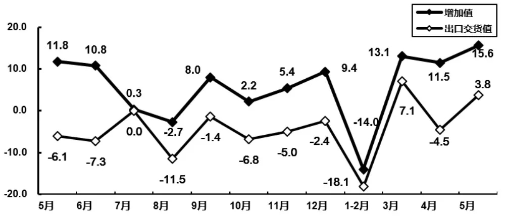計(jì)算機(jī)制造業(yè)增加值和出口交貨值分月增速(%)-數(shù)據(jù)源自工信部