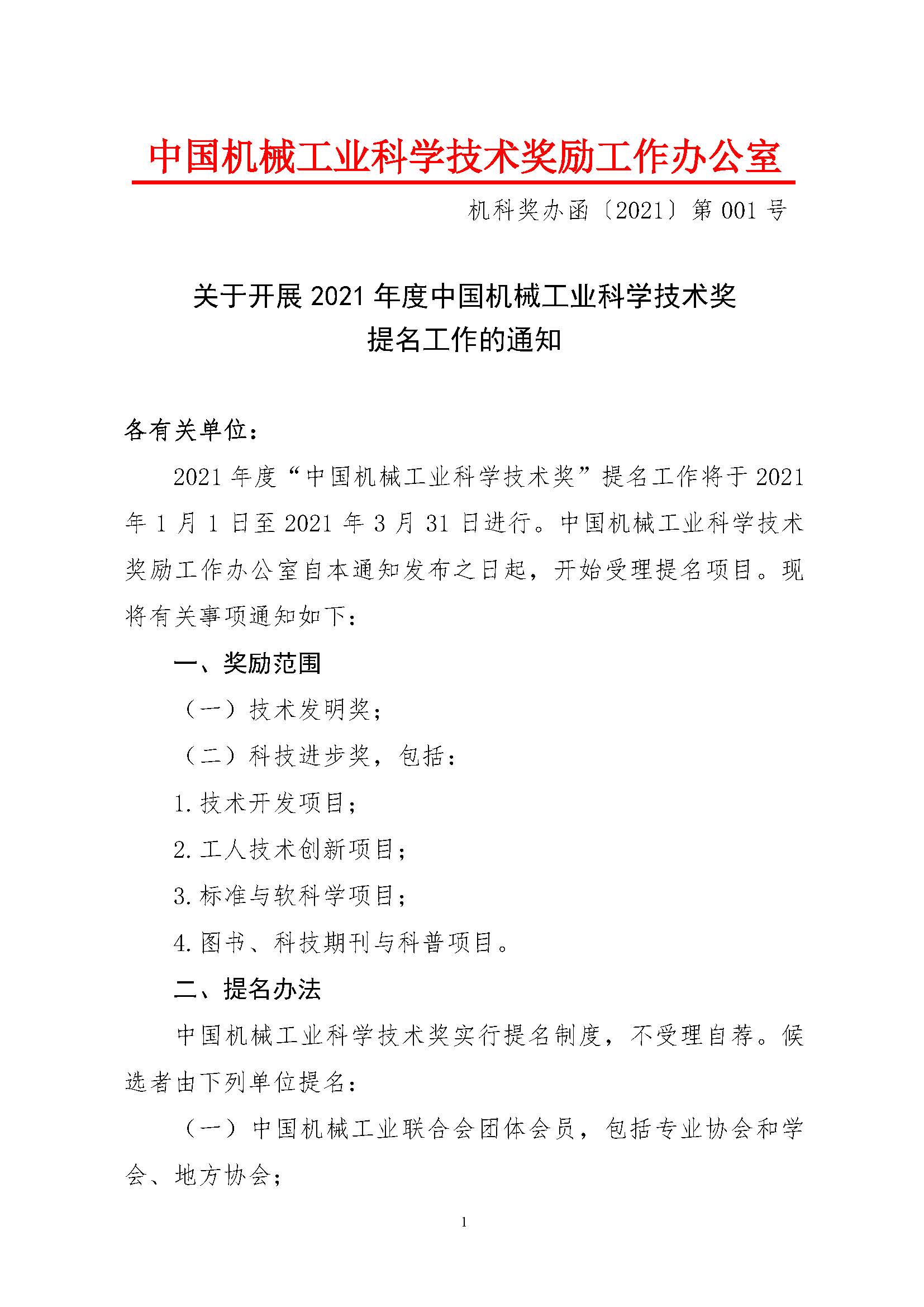 1. 關(guān)于開展2021年度中國機械工業(yè)科學(xué)技術(shù)獎提名工作的通知.pdf