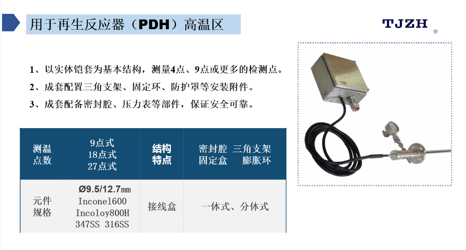 天津市中環(huán)溫度儀表有限公司發(fā)布的新產(chǎn)品是再生反應(yīng)器(PDH)高可靠性柔性多點(diǎn)熱電偶。