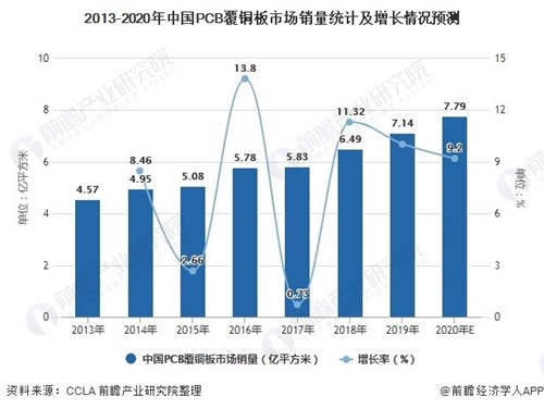 2013-2020年中國PCB覆銅板市場銷量統(tǒng)計(jì)及增長情況預(yù)測