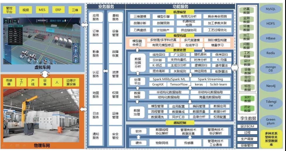 針對實際車間管理人員受限于合理及定制化的技術和工具的及時支撐,被迫采用傳統管理方式,管理效率低;企業管理層缺乏全面、全量、統一的決策支撐技術和工具,大部分解決方案不成熟、難落地,精準決策難等問題,設計了基于數字孿生智能車間的體系架構。