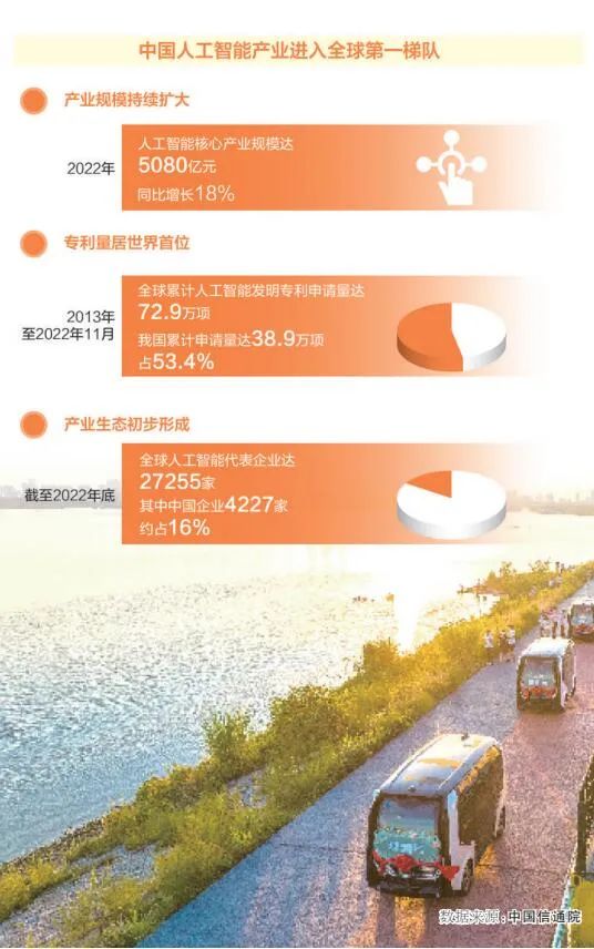 近年來,我國人工智能產(chǎn)業(yè)在技術(shù)創(chuàng)新、產(chǎn)業(yè)生態(tài)、融合應(yīng)用等方面取得積極進展,已進入全球第一梯隊。中國信通院測算,2022年我國人工智能核心產(chǎn)業(yè)規(guī)模達5080億元,同比增長18%。