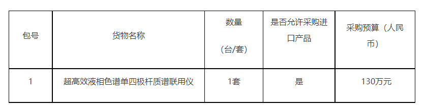 項(xiàng)目名稱:煙臺新藥創(chuàng)制山東省實(shí)驗(yàn)室超高效液相色譜單四極桿質(zhì)譜聯(lián)用儀采購項(xiàng)目
