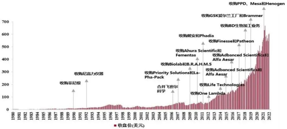 Thermo Fisher股價與重要并購事件,資料來源:Wind、招商銀行研究院