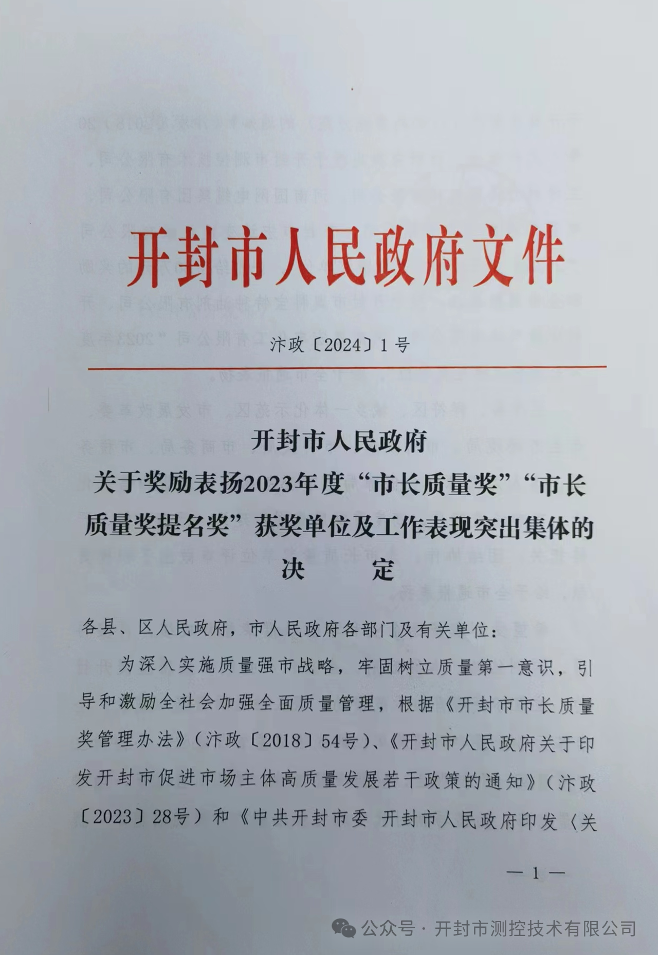 開(kāi)封測(cè)控技術(shù)有限公司憑借其卓越質(zhì)量管理方面的出色表現(xiàn),榮獲了2023年度開(kāi)封市“市長(zhǎng)質(zhì)量獎(jiǎng)”,并在評(píng)比中榮登榜首。這一榮譽(yù)的獲得,無(wú)疑為開(kāi)封測(cè)控技術(shù)有限公司再添殊榮,也進(jìn)一步彰顯了其在行業(yè)中的領(lǐng)先地位和卓越品質(zhì)。