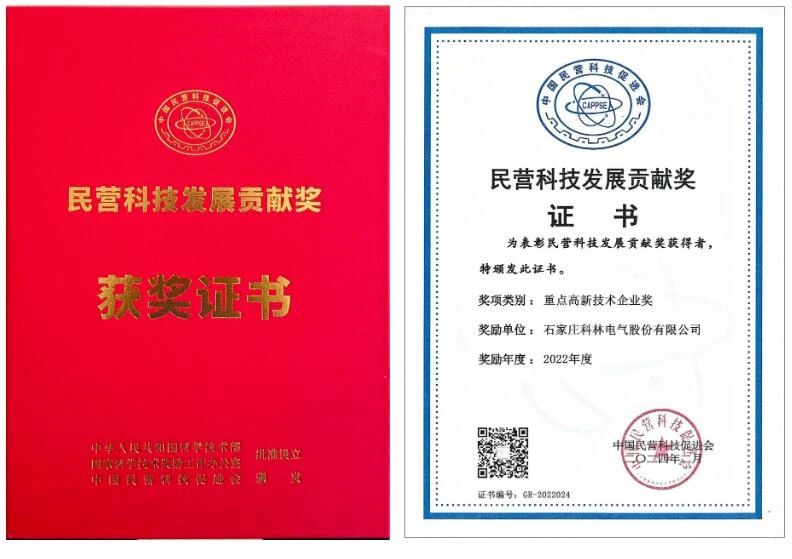 近日,中國(guó)民營(yíng)科技促進(jìn)會(huì)發(fā)布了“民營(yíng)科技發(fā)展貢獻(xiàn)獎(jiǎng)”獲獎(jiǎng)名單,石家莊科林電氣股份有限公司榜上有名,榮獲“中國(guó)民營(yíng)科技發(fā)展貢獻(xiàn)獎(jiǎng)”殊榮,這是對(duì)公司長(zhǎng)期堅(jiān)持自主創(chuàng)新、持續(xù)推動(dòng)科技進(jìn)步所取得成就的權(quán)威認(rèn)可。