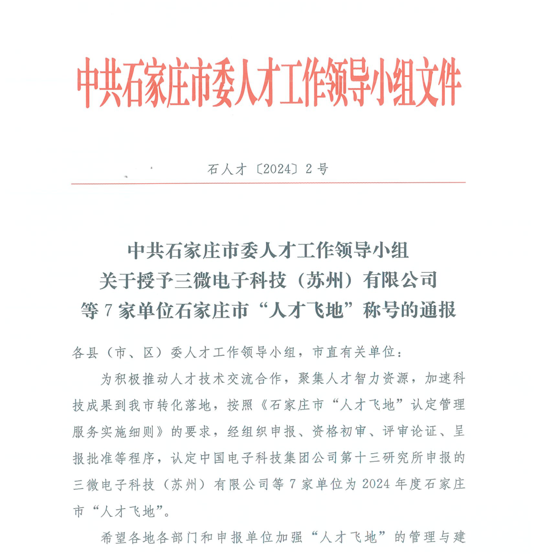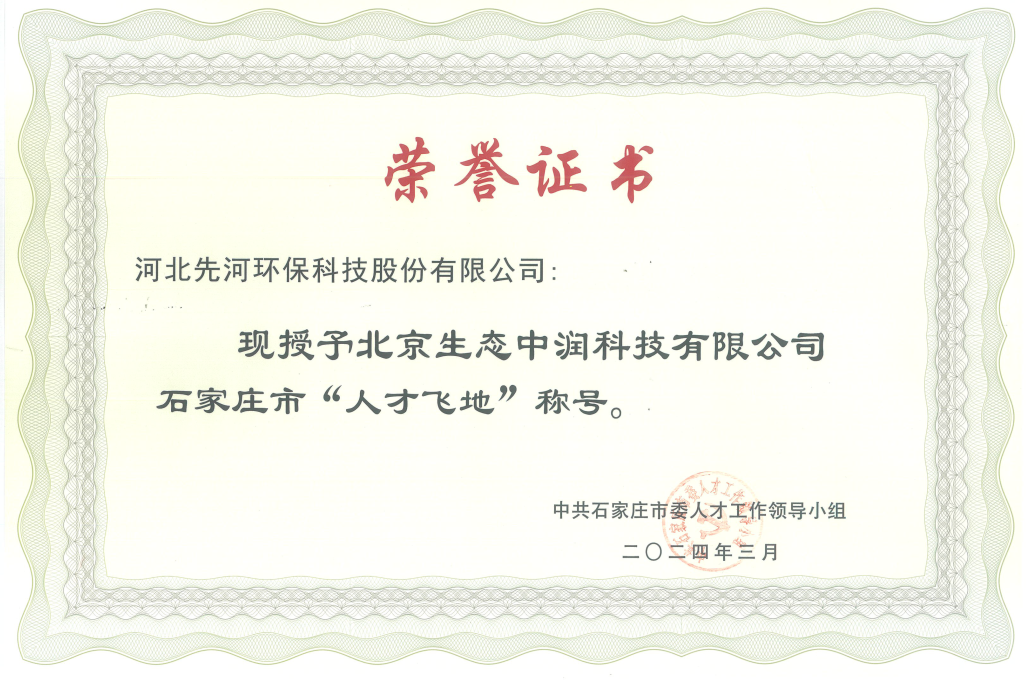 近日,中共石家莊市委人才工作領(lǐng)導(dǎo)小組對(duì)2024年度石家莊市“人才飛地”認(rèn)定結(jié)果進(jìn)行通報(bào),北京生態(tài)中潤(rùn)科技有限公司作為先河環(huán)保北京研發(fā)中心載體,正式被認(rèn)定為石家莊市“人才飛地”稱號(hào)。