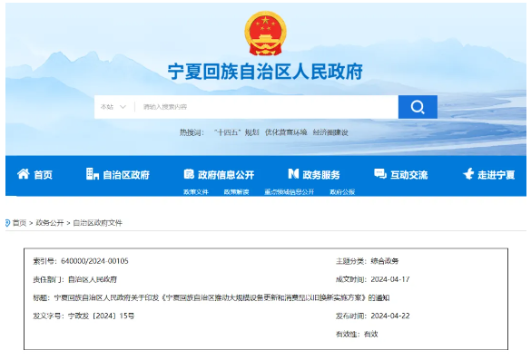 寧夏回族自治區(qū)推動大規(guī)模設(shè)備更新和消費品以舊換新實施方案