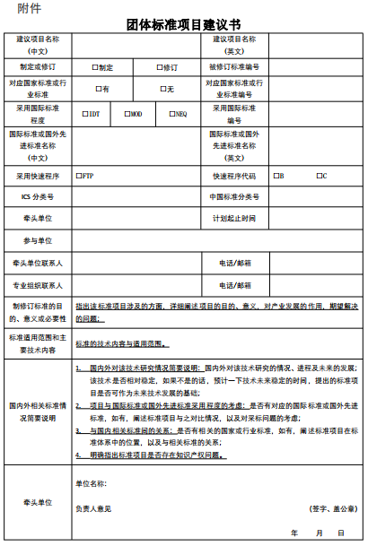 附件:團體標準項目建議書
