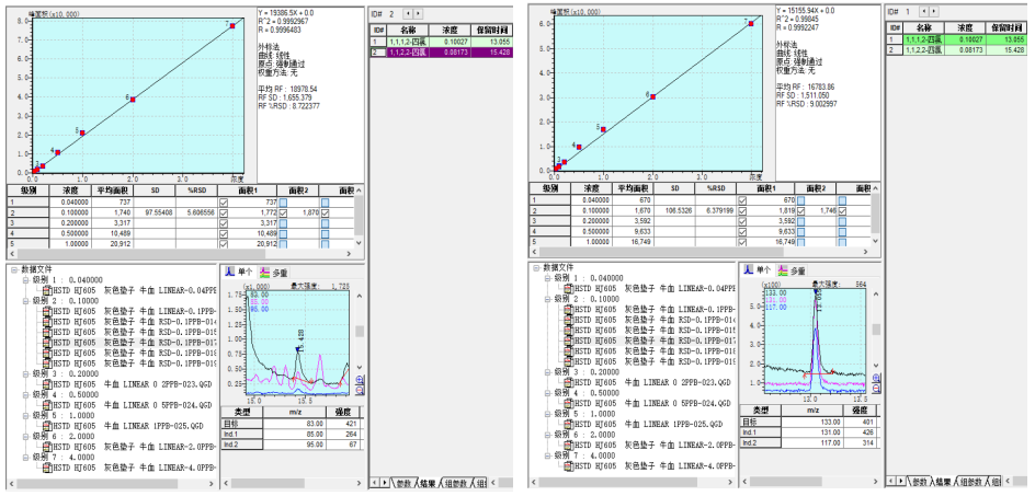 因為血液、尿液基體非常復(fù)雜,受基體的干擾,無法采用液液萃取、吹掃捕集等常規(guī)前處理方法,而頂空進樣法靈敏度較低,不能滿足ng/L級別濃度范圍的分析需求;使用HSTD多功能進樣器的動態(tài)頂空功能,即保留了頂空法不受樣品基體干擾的優(yōu)點,又可以大幅度提高檢測靈敏度,且保持較好的色譜峰型,可滿足血液中ng/L級別揮發(fā)性有機物的分析需求。