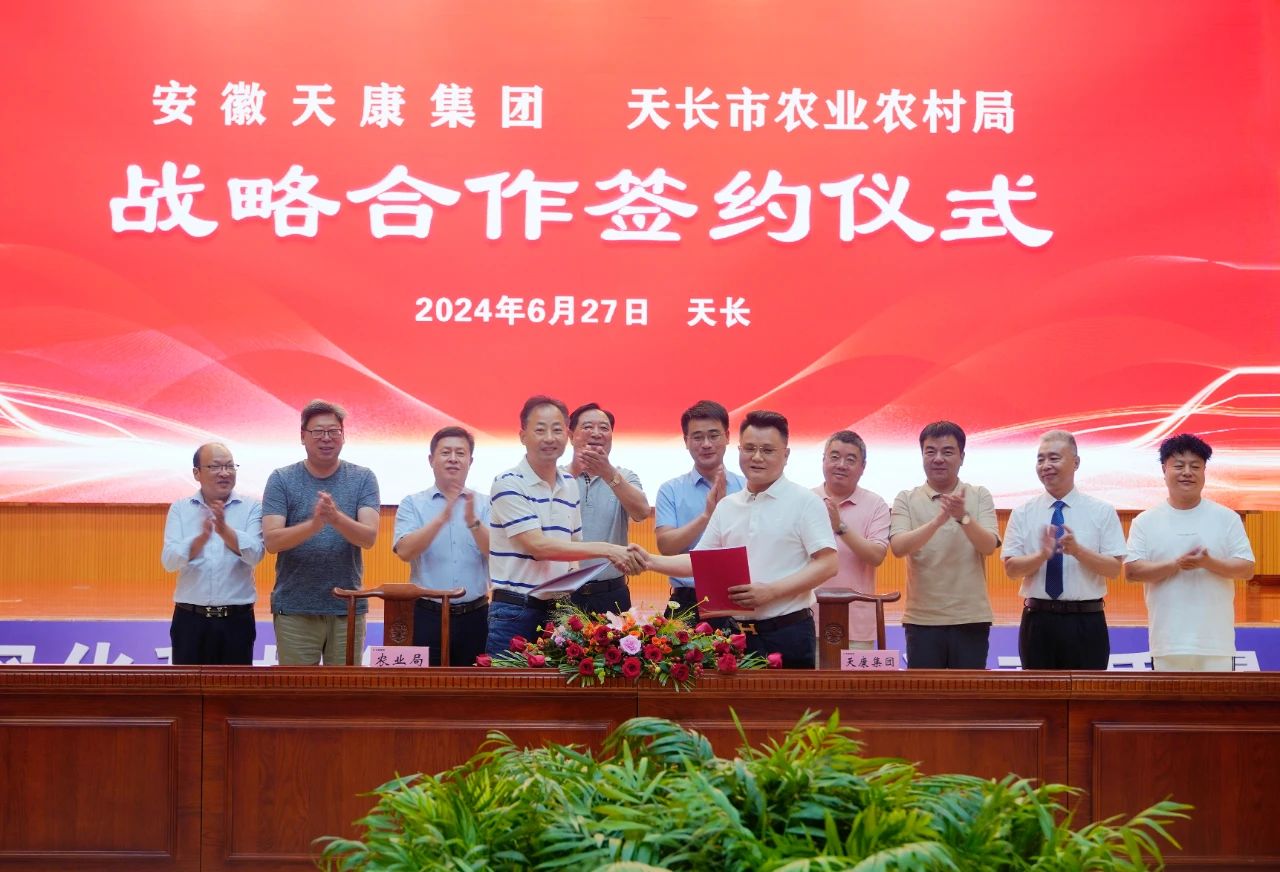 儀式上,安徽天康集團總經理毛文章與天長市農業農村局局長王德佑代表雙方簽訂戰略合作協議書,與會領導共同見證了這一具有重大意義的時刻。