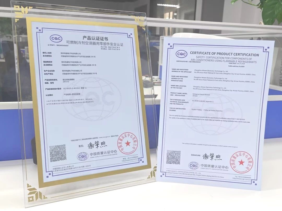 座談會上,CQC和UL Solutions的專家們深入探討了國際家電產(chǎn)品認證的發(fā)展趨勢、標(biāo)準(zhǔn)要求以及市場準(zhǔn)入策略。并現(xiàn)場頒發(fā)了首批國際合作項目認證證書,鄭州煒盛電子科技有限公司榮幸成為首批獲證企業(yè)之一,也是制冷劑傳感器領(lǐng)域首家獲證企業(yè),標(biāo)志著公司在可燃制冷劑空調(diào)器用零部件安全認證領(lǐng)域邁出了堅實的步伐。