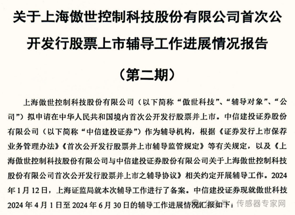 目前,中國A股市場有多家傳感器企業正在進行IPO輔導,并在近期更新了最新上市輔導情況,哪幾家傳感器企業在沖擊IPO上市?
