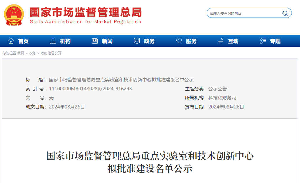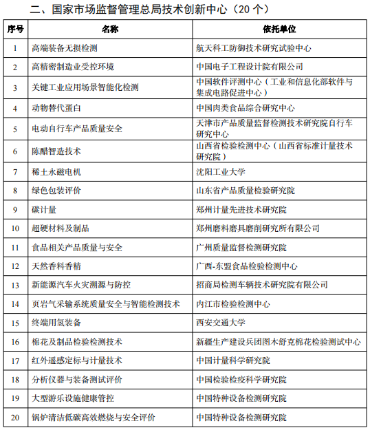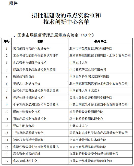 國家市場監督管理總局重點實驗室和技術創新中心擬批準