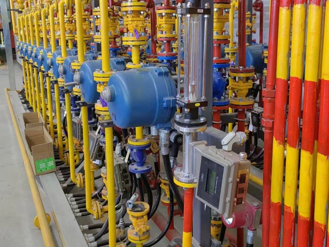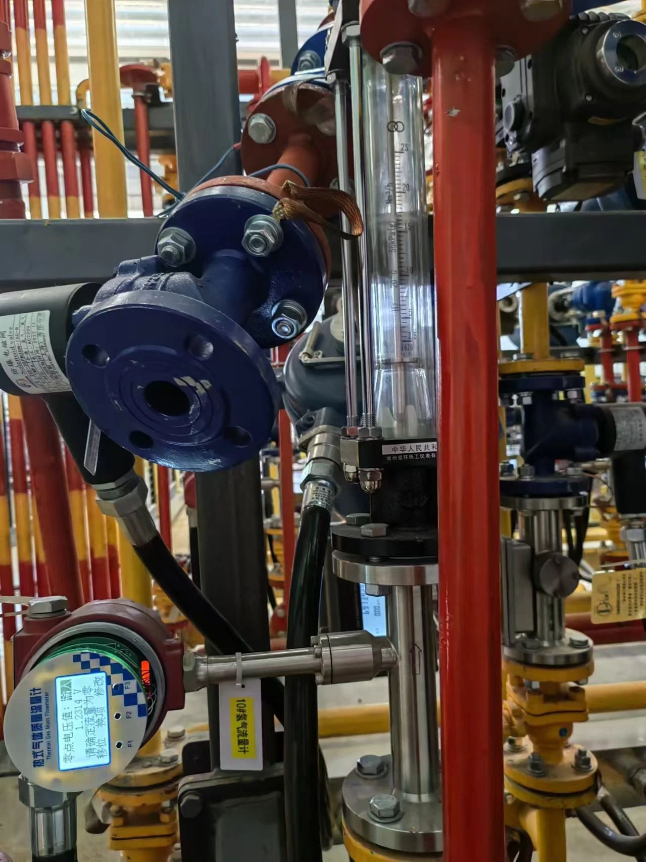 氮氣測量采用1.5%精度的LWQ系列氣體渦輪流量計控制流量,因現(xiàn)場垂直安裝,選無注油表體。氫氣測量采用管道式SFMT系列熱式氣體質(zhì)量流量計。