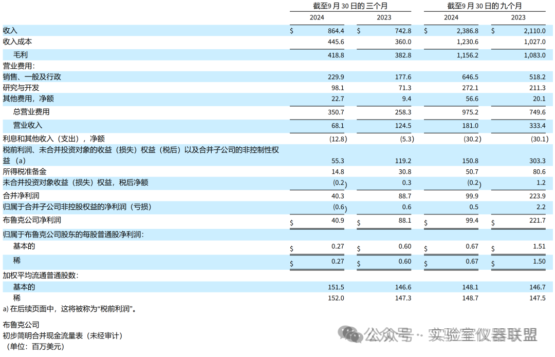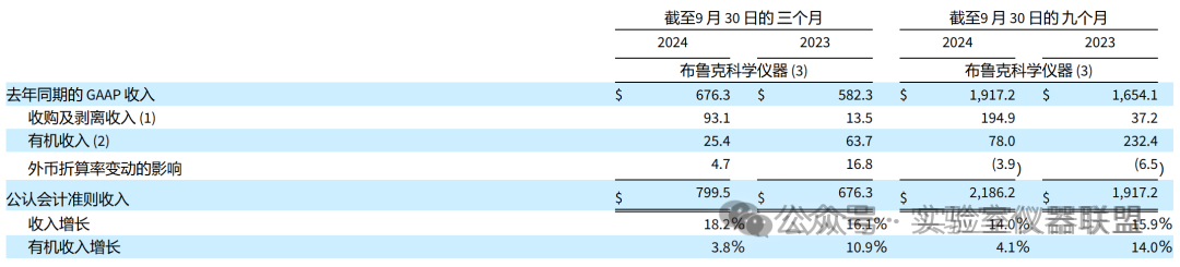 根據(jù)報(bào)告,布魯克 2024 年第三季度的收入為 8.644 億美元,與 2023 年第三季度的 7.428 億美元相比增長(zhǎng) 16.4%。2024 年第三季度,收入同比有機(jī)增長(zhǎng) 3.1%,固定匯率 (CER) 收入增長(zhǎng) 15.7%。收購收入增長(zhǎng) 12.5%,外幣折算產(chǎn)生 0.7% 的有利影響。