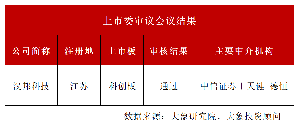 漢邦科技(首發(fā))獲通過