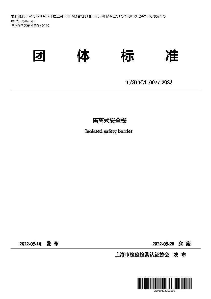 圖:T/STIC 110077—2022《隔離式安全柵》標準