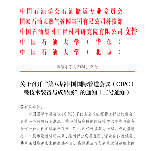 為深化行業(yè)協(xié)同創(chuàng)新,推動(dòng)儀器儀表行業(yè)在能源管道行業(yè)用戶(hù)領(lǐng)域深耕,現(xiàn)轉(zhuǎn)發(fā)《關(guān)于召開(kāi)“第八屆中國(guó)國(guó)際管道會(huì)議(CIPC)暨技術(shù)裝備與成果展”的通知》(詳見(jiàn)附件),誠(chéng)邀各會(huì)員單位及相關(guān)企業(yè)積極參與。