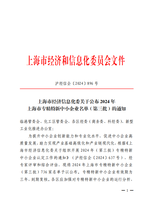 12月19日,上海市經濟信息化委公布2024年《上海市專精特新中小企業名單(第三批)的通知》,上海舜宇恒平科學儀器有限公司成功獲評“2024年上海市專精特新中小企業”稱號,科技創新能力、企業核心競爭力再度獲得權威認可。
