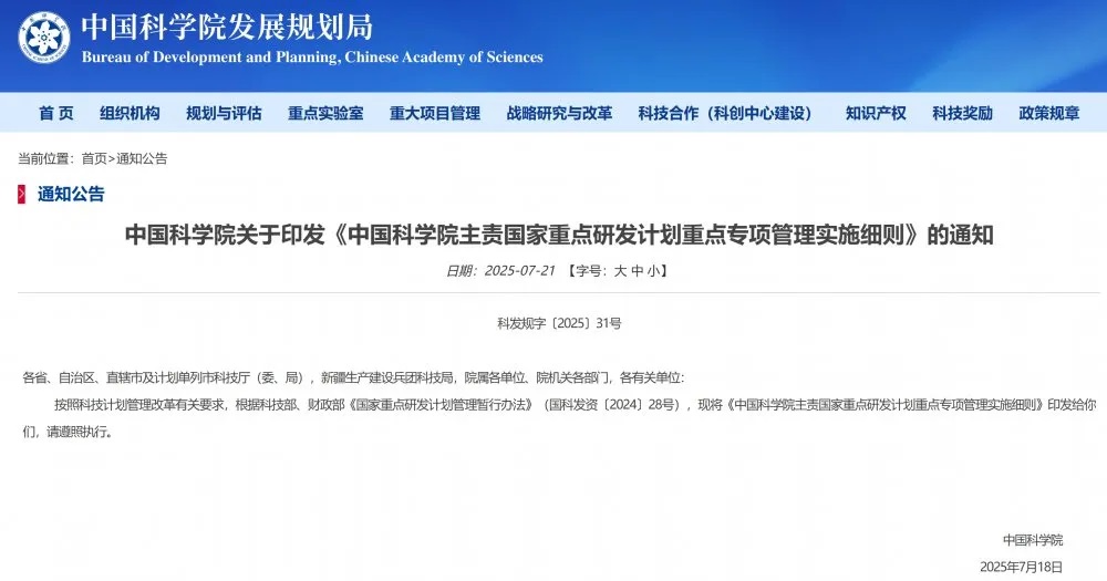 中國科學(xué)院正式印發(fā)《中國科學(xué)院主責(zé)國家重點(diǎn)研發(fā)計劃重點(diǎn)專項管理實(shí)施細(xì)則》(以下簡稱《細(xì)則》)。
