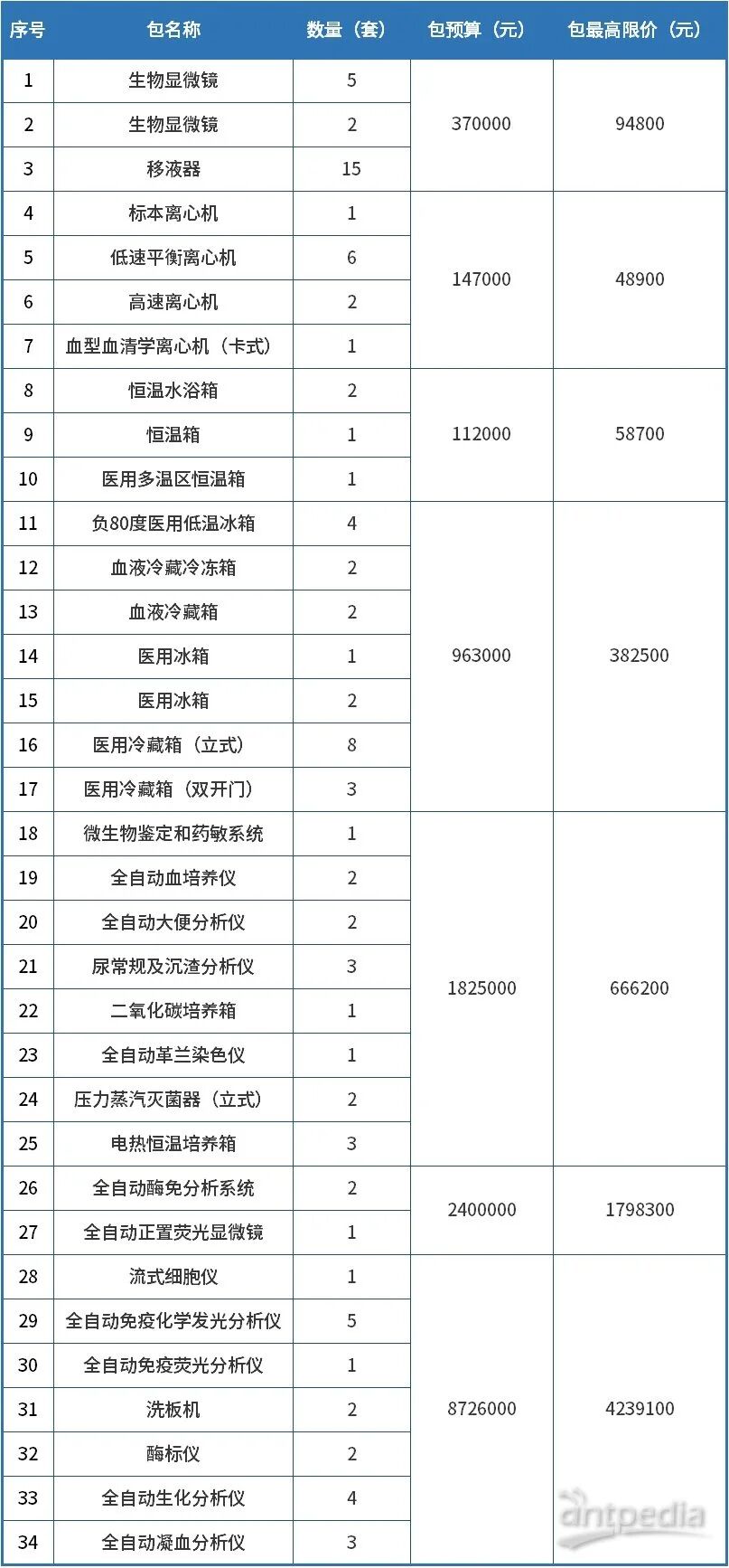 近日,鄭州市中心醫(yī)院國家創(chuàng)傷區(qū)域醫(yī)療中心公布多批次招標公告,其中集中招標采購一批實驗室分析檢測設備,主要包括生物顯微鏡、全自動正置熒光顯微鏡、流式細胞儀、酶標儀、洗板機、離心機、移液器等,這些設備預算總額為1454.3萬元。詳情如下: