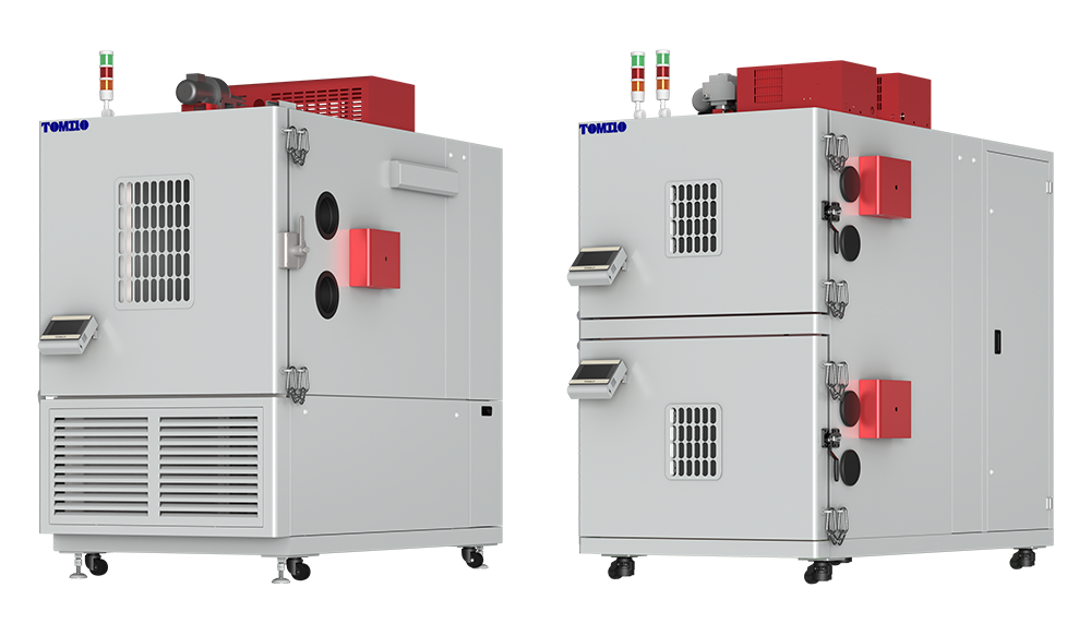 在電池測試環境試驗設備中,多間室共享一套制冷機組(含單個冷凝器+多個蒸發器)的架構普遍存在。每個間室需獨立設置溫濕度條件以模擬不同測試場景,但傳統系統難以根據各間室實時負荷動態調節制冷劑流量,導致:制冷效率低下,間室溫度波動大;壓縮機頻繁啟停或過載運行;能源浪費與設備壽命縮短等問題。