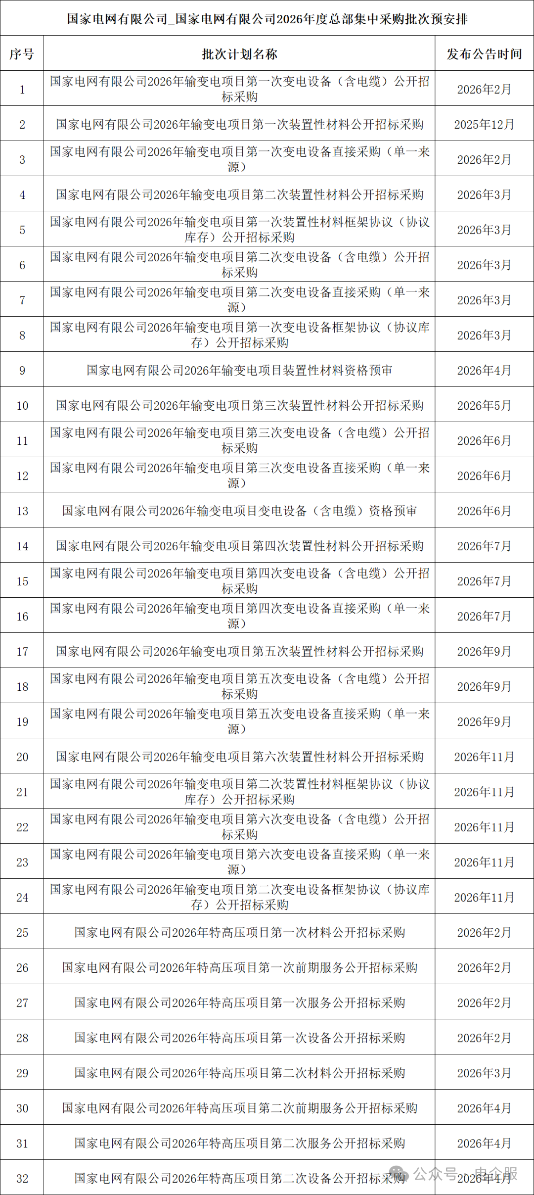 國家電網有限公司2026年度總部集中采購批次預安排