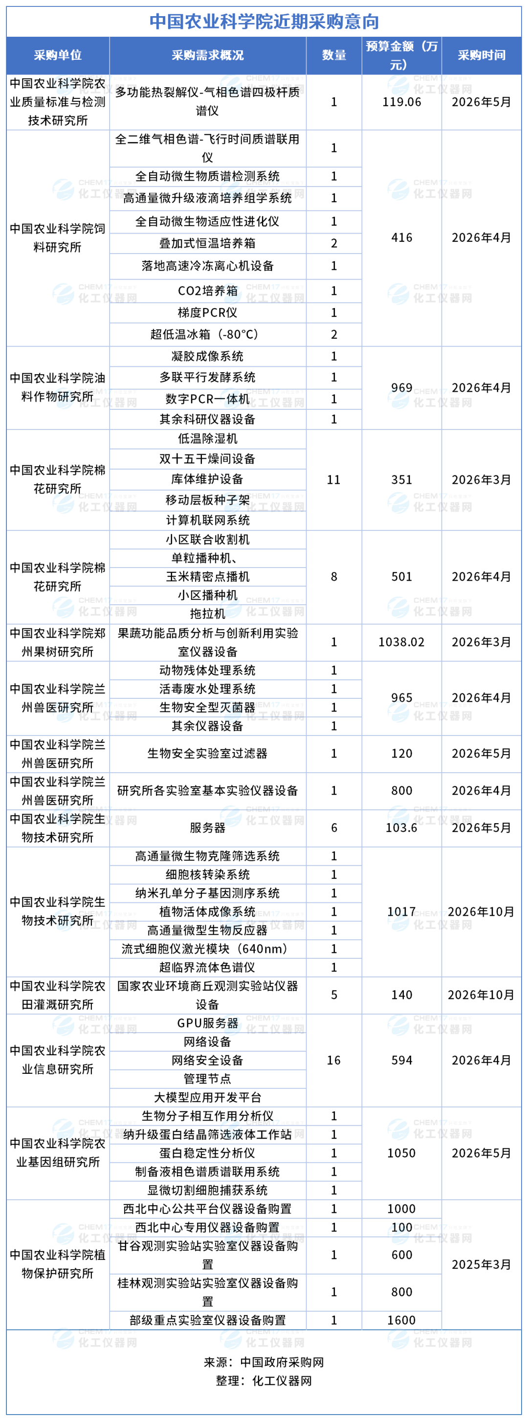 預算超1.2億元!中國農業科學院近期儀器采購意向